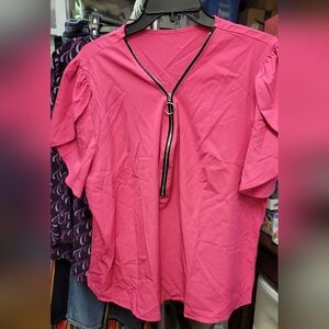 Pink Zippered Tulip Short Sleeved Top 2XL