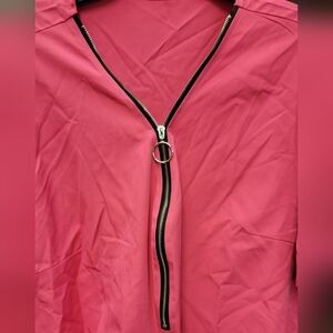 Stylish pink women's top featuring a chic zippered front. Perfect for casual outings or a day at the office.
