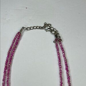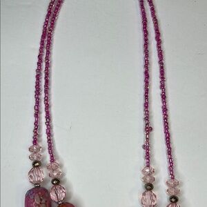 Add a pop of color to your outfit with this stunning pink beaded necklace. Perfect for any occasion.