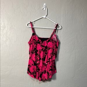 Pink and Black Asymmetrical Ruffled Camisole Bikini