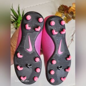 Vibrant pink and black athletic shoes with a sleek design. Perfect for sports and casual wear.