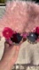 Stylish sunglasses with pink and black embellishments. Features sparkling gems and floral accents.