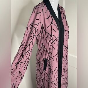 Elegant long robe with a pink and black design. Perfect for lounging in style.