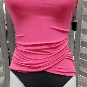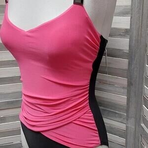 Dive into summer with this chic and stylish one-piece swimsuit! Featuring a vibrant pink top that contrasts beautifully with the sleek black bottom, this swimsuit is designed to turn heads at the beach or by the pool. The pink section boasts a flattering ruched design around the waist, accentuating your curves in all the right places. Thin shoulder straps ensure a secure and comfortable fit. Whether you're lounging by the water or taking a dip, this swimsuit from Aqua Green offers the perfect blend of fashion and function.