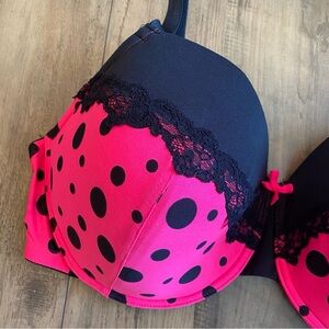 Pink and Black Polka Dot Lace Bra • Size 42DD • EUC