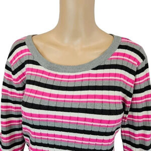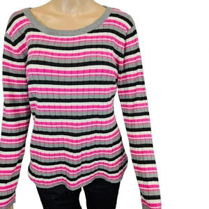 Pink and Black Stripped Ribbed Sweater Long Sleeve Size XL (15/17) No Boundaries