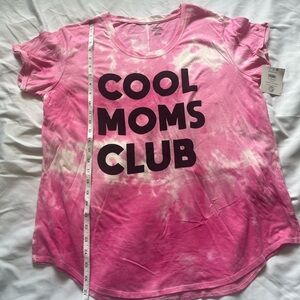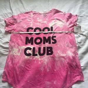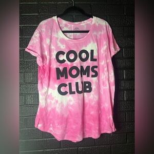 This vibrant pink and black tie-dye tee features a bold 'Cool Moms Club' print, offering a playful yet modern look. The short sleeves and relaxed fit make it perfect for casual outings, while the dynamic pattern adds a touch of fun to your wardrobe.