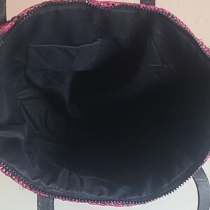 Pink and Black Woven Tote Bag Leather Handles Zip Closure