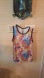 Pink and Blue Floral Tank Top with Rounded Neckline. Size LARGE