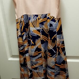 Stylish dress with a pink top and blue patterned skirt. Features orange and white accents. I can bundle items, make an offer.