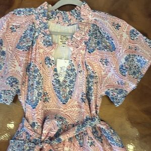 This stylish mini dress features a beautiful red and blue pattern, perfect for any occasion. Its lightweight fabric and flattering fit make it a must-have for your wardrobe.
