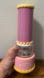 Vintage Charming pink and blue striped decor with a circus theme. Musical box. Features playful details and vibrant colors.