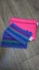 Set of 3 vibrant pouches. Includes a pink pouch and a blue striped pouch. Perfect for organizing essentials.