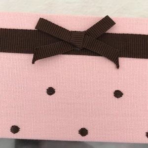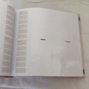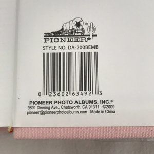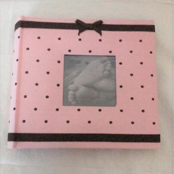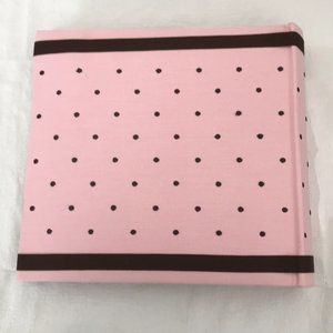 New with tag, unused photo album. Cover is pink fabric with brown embroidered dots and ribbon bow and trim Labe says archival, photo safe,: Acid Lignin & PVC Free. Hs plastic covering that labeling is on. Holds 200 4x6 photos. Closed, the album measures 9 x 8.5 x 2 inches. Beautiful baby album. Unused, in great condition.