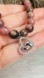 Pink and Brown Natural Stone Beaded Stretch Bracelet with Feet in Heart Charm