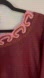 Gorgeous raisin brown and vibrant pink dip/tie dyed Jaquard caftan with embroidery detail at neckline, sleeves, and skirt. No material tag but feels like a blended rayon. Free size. Approximately 56” long.