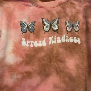 This sweatshirt showcases a unique tie-dye pattern in pink and brown, adorned with three butterfly designs on the front. The long sleeves and classic crew neckline make it a comfortable and stylish choice for casual wear.