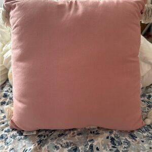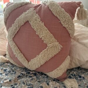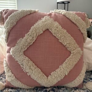 Add a touch of elegance to your home with this pink and cream decorative pillow. Perfect for enhancing any living space.