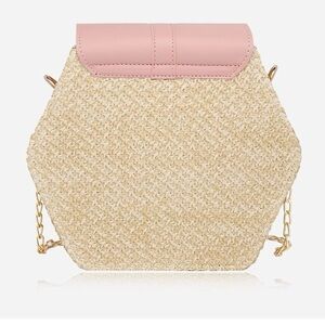 Pink and Cream Hexagonal Crossbody Bag with Gold Chain