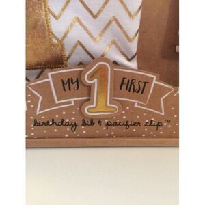 New First Birthday Bib and Binky Clip Gold and Pink Fast Shipping Check out my other listings.