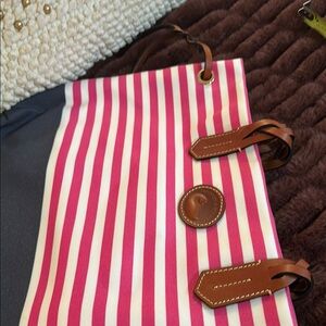 Measures 18 inches by 12 inches with a strap drop of 12 inches. Dooney and Bourke nylon tote bag just in time for summer at the lake or beach