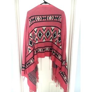 Pink and Grey Tribal Print Fringe Sweater