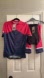 Stylish cycling jersey and shorts set in pink and blue. Features a dotted pattern and zip-up front. Great cushioned shorts.