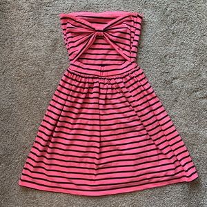Pink and navy strapless sundress purchased in a high end boutique. Has a very pretty bow in the back with rubber to keep the dress in place. In perfect condition. It is a size medium but does run a little bit small.