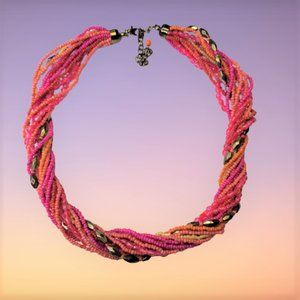 Pink and Orange Beaded Twist 13 Strand Bead Necklace