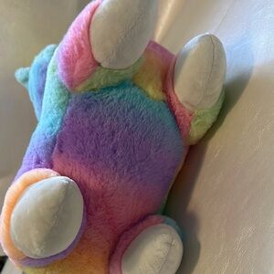 This plush stuffed animal features a delightful blend of pink and orange hues, offering a soft and cuddly experience. Its charming design includes a large head and a plump body, making it an endearing companion. Perfect for those who love vibrant colors and huggable toys.