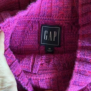 Warm Pink and Purple Cable Knit Crew Neck Gap Sweater. The tag reads Medium but would fit a Small better. Please see measurements. 100% cotton in good pre owned condition