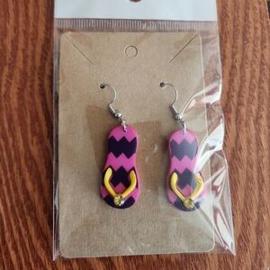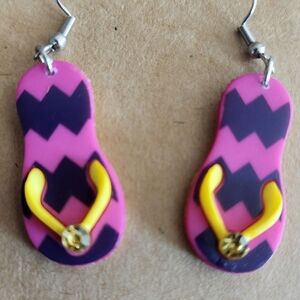 Add a playful touch to your look with these pink and purple flip-flop earrings. Perfect for casual outings or going to the beach.