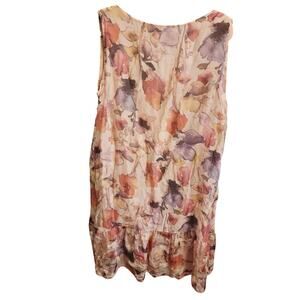 This sleeveless sundress features a charming scoop neckline and a playful ruffled, tiered design. The pink and purple hues make it perfect for casual outings or resort wear, offering a breezy and stylish look.