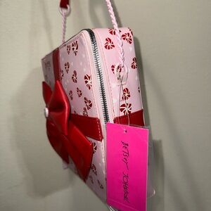 Betsey Johnson BOW Peppermint candy hearts Christmas bag purse handbag Red Pink