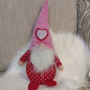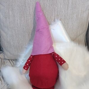 Adorable gnome plush with a pink hat. Red body with white polka dots. Perfect for decor or gifting.
