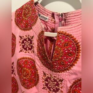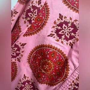 This stylish pink and red patterned dress is perfect for any occasion. Its vibrant colors and unique design make it a standout piece in your wardrobe. Purchased at a local market. Worn once.