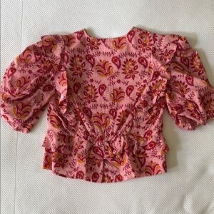 Pink and Red Ruffled Fitted Blouse