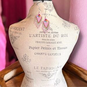 Pink and Silver Beaded Chandelier Earrings Pink Pony Club inspired