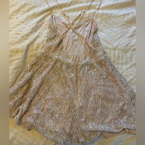 Shimmery and delicate, this lacy romper falls like a dress but has the most comfortable and smooth fabric underneath for shorts. Perfect for a costume, birthday, or New Years’ Eve party 🦄✨