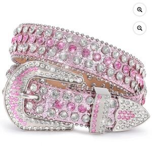 Add sparkle to your outfit with this stunning pink and silver rhinestone belt. Perfect for adding a touch of glamour to any look.