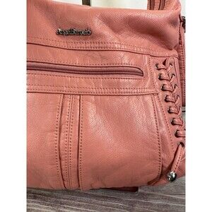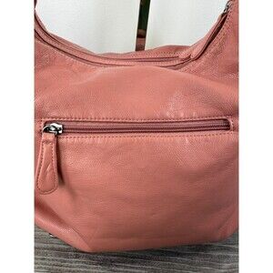 This chic shoulder bag features a soft, slouchy leather design in a stunning pink and silver color combination. Its relaxed style is complemented by decorative tassels, making it a versatile accessory for everyday use.