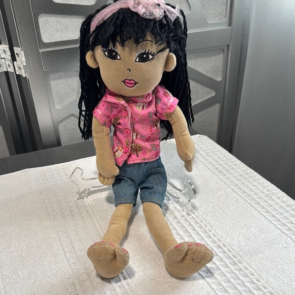 Pink and Tan Plush Doll with Asian-Inspired Features