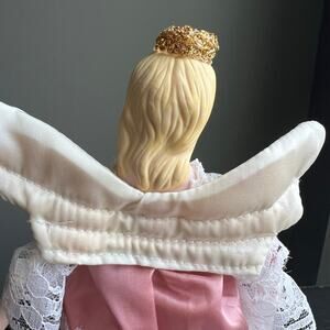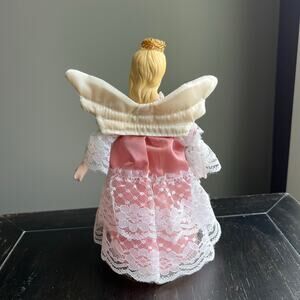 Pink and White Angel Christmas Tree Topper-9 inches Porcelain Head Small 9.5 in