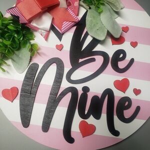 Enhance your home decor with this charming pink and white 'Be Mine' wall art. Accented with lush greenery, it's perfect for adding a touch of love to any room.
