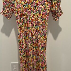 Embrace sophistication with this stunning sundress, showcasing a delightful pink and white floral pattern. Perfect for wedding guests, this maxi dress features a flattering V-neckline and 3/4 cuffed sleeves. Its wrap-style design ensures a graceful and comfortable fit for any elegant occasion. P2P 19’ & length 52’