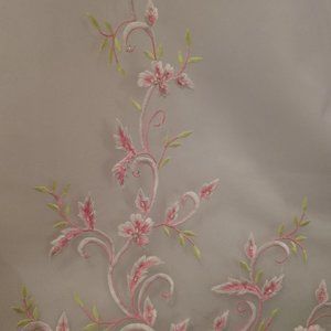 Beautiful princess style pink prom dress mixed with tones of white. Beautifully embroidered flowers along the bust and around the bottom of the dress. Comes with a sheer shawl.