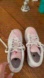 Stylish Nike sneakers in pink and white. Features red logo accents. Perfect for everyday wear.