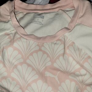 Stylish two-piece set with a pink and white pattern. Perfect for casual outings. Notice shorts size small and dress size medium.