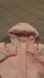 Cozy pink and white puffer jacket with a hood. Features a cute heart detail on the chest.