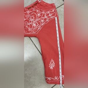 Pink and White Ruffled Tiered Sundress with Bell Sleeves Embroidered.